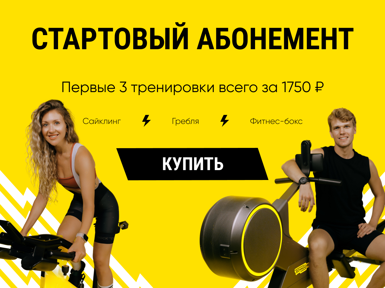 Возможность позаниматься большой компанией с любимым тренером в любом направлении: сайкл, гребля, фитбоксинг.