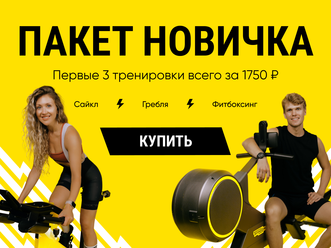 Возможность персонально позаниматься с любимым тренером в любом направлении: сайкл, гребля, фитбоксинг.